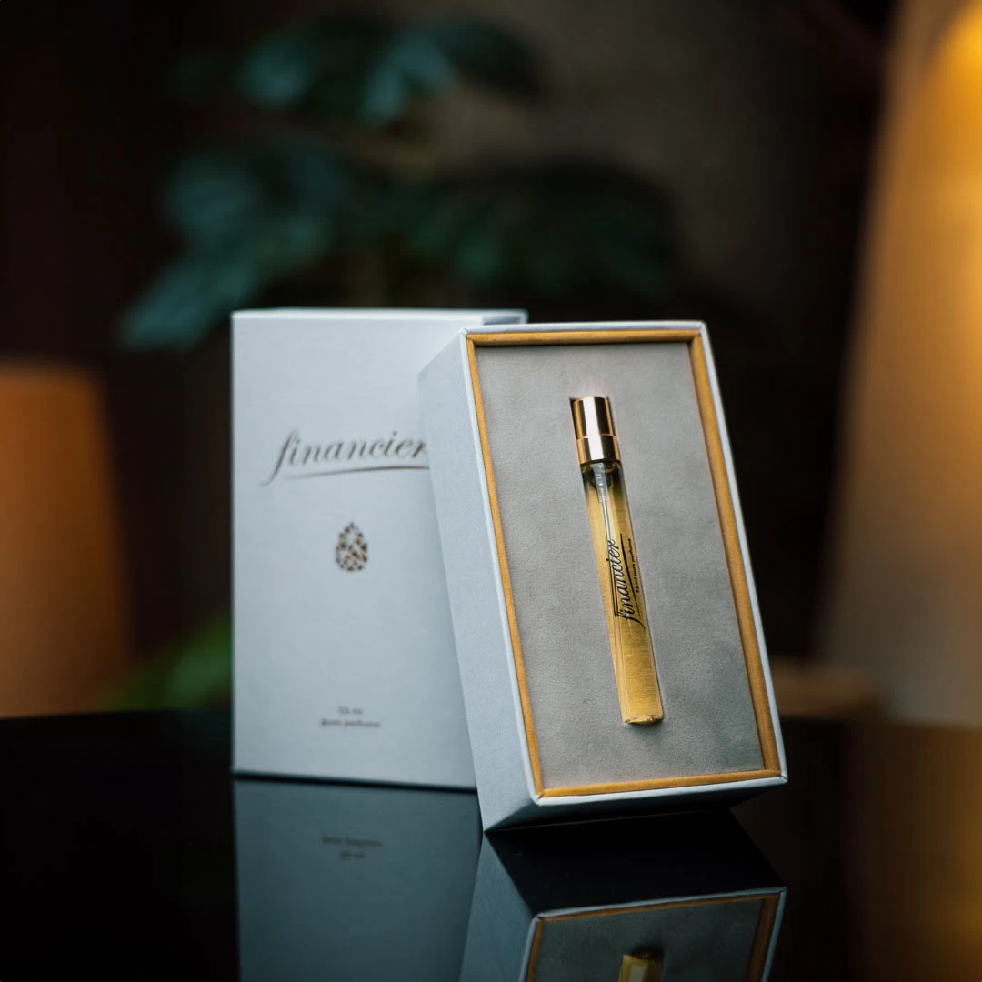 FINANCIER – rankų darbo, nišiniai, pure perfume koncentracijos kvepalai jai ir jam, sukurti pripažinto Lietuvos parfumerio Aisčio Mickevičiaus. Intensyvi kvapo kompozicija atsiskleidžia sluoksniais ir išlieka ilgai, net ir nedidelėje miniatiūros talpoje.