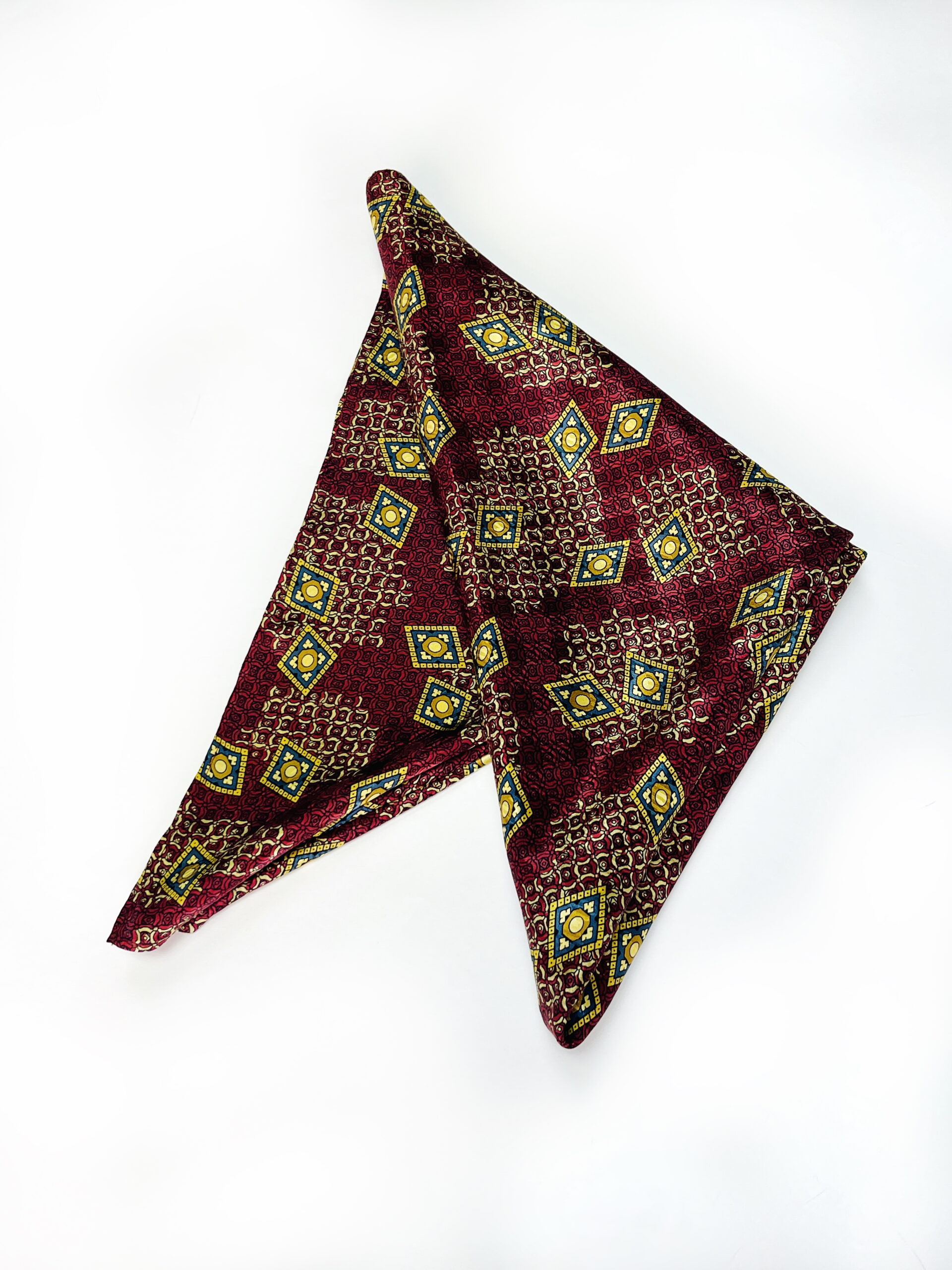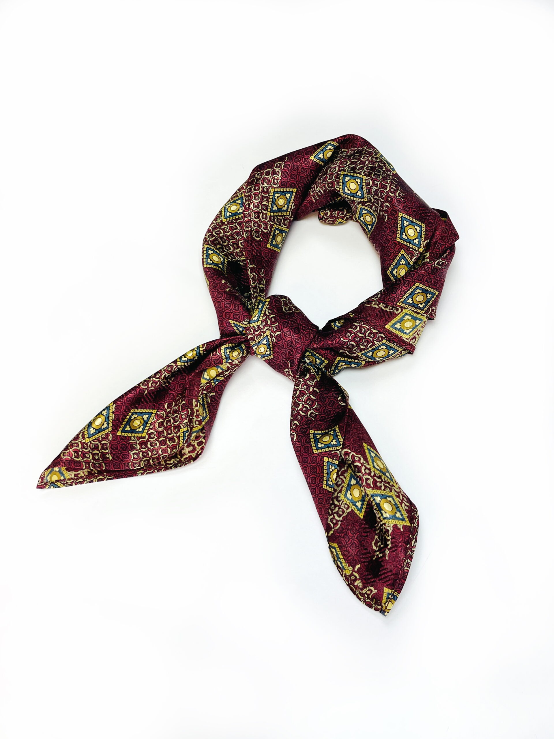 Natūralaus šilko bordo kaklaskarė su geometriniu raštu – unikalus ir stilingas akcentas