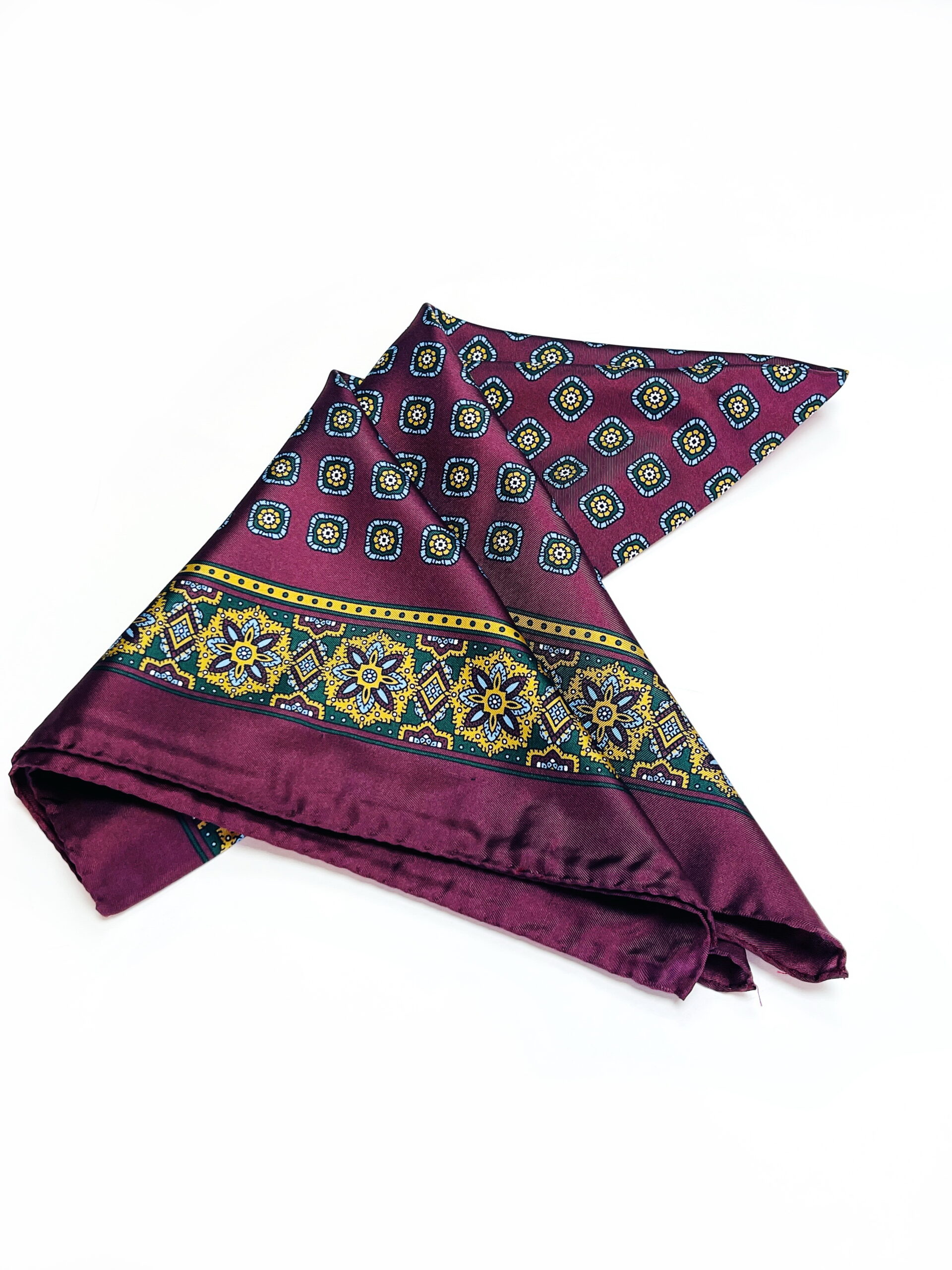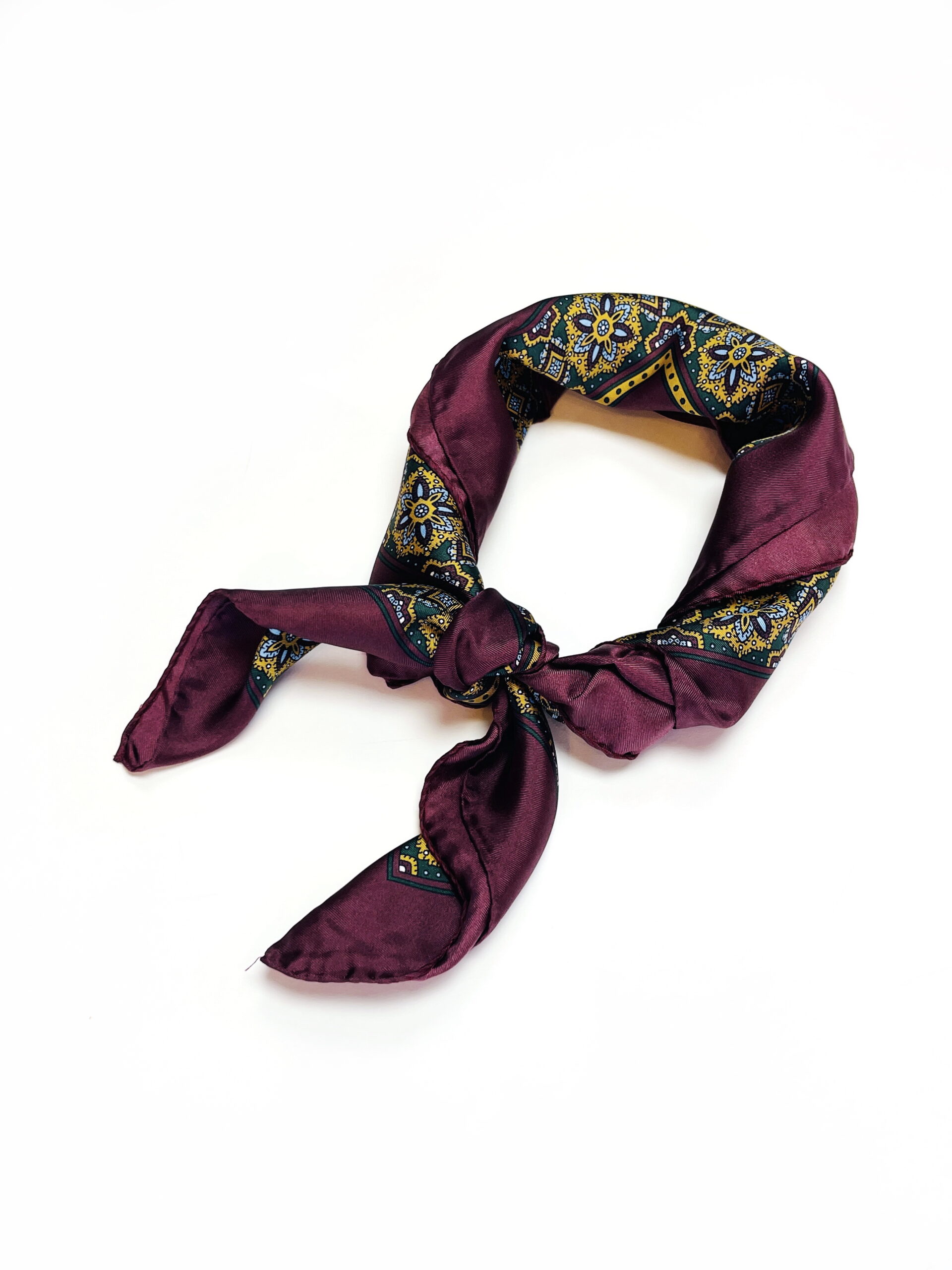 Natūralaus šilko bordo kaklaskarė su raštais – unikalus ir stilingas akcentas
