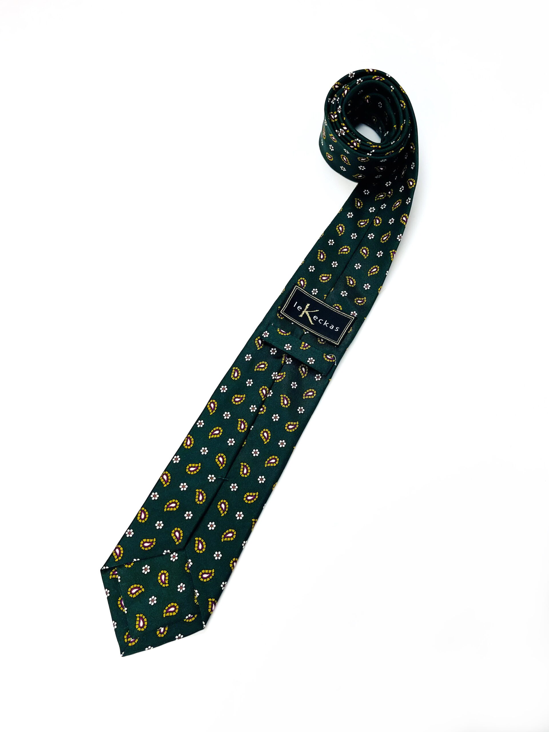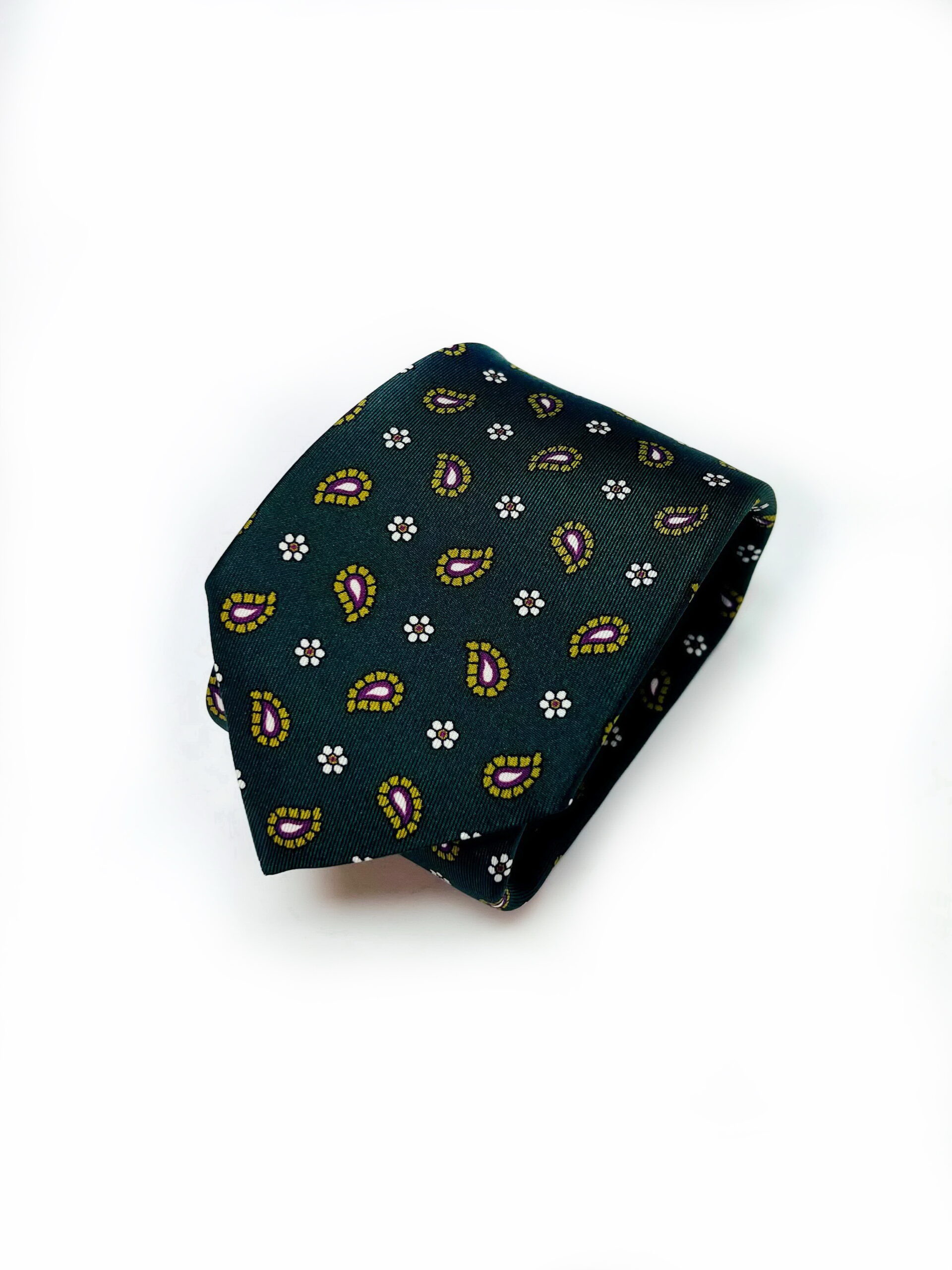 Natūralaus šilko tamsiai žalias kaklaraištis su peislio raštu – ryškus ir stilingas akcentas jūsų aprangai