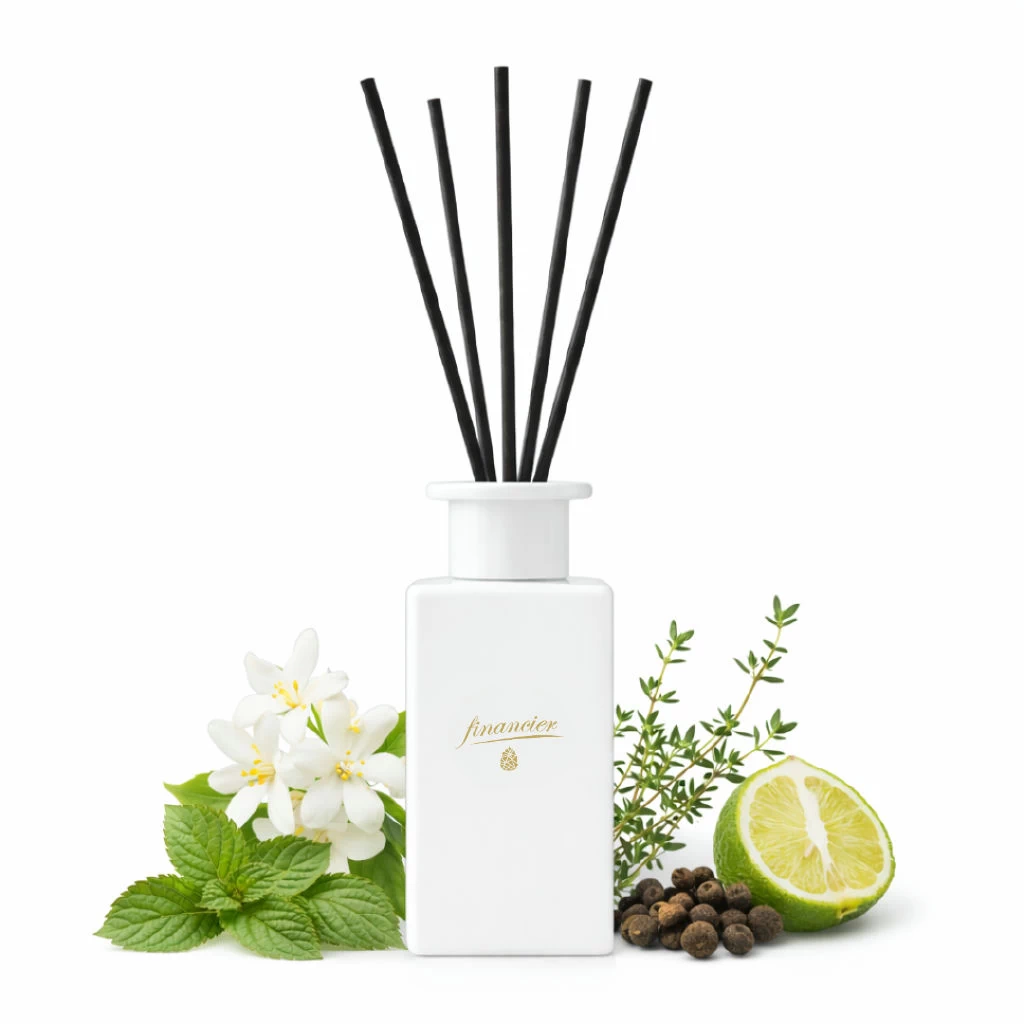 Namų kvapas FINANCIER išsiskiria subalansuota, charakteringa aromato kompozicija. Gaivi bergamotė atveria kvapą, suteikdama švaros ir profesionalumo įspūdį. Jazmino švelnumas įneša subtilios elegancijos, o pačiulis kuria gilų, sodrų pagrindą. Čiobrelio aštrumas ir kvapniojo pipiro prieskonis suteikia aromatui išskirtinumo.