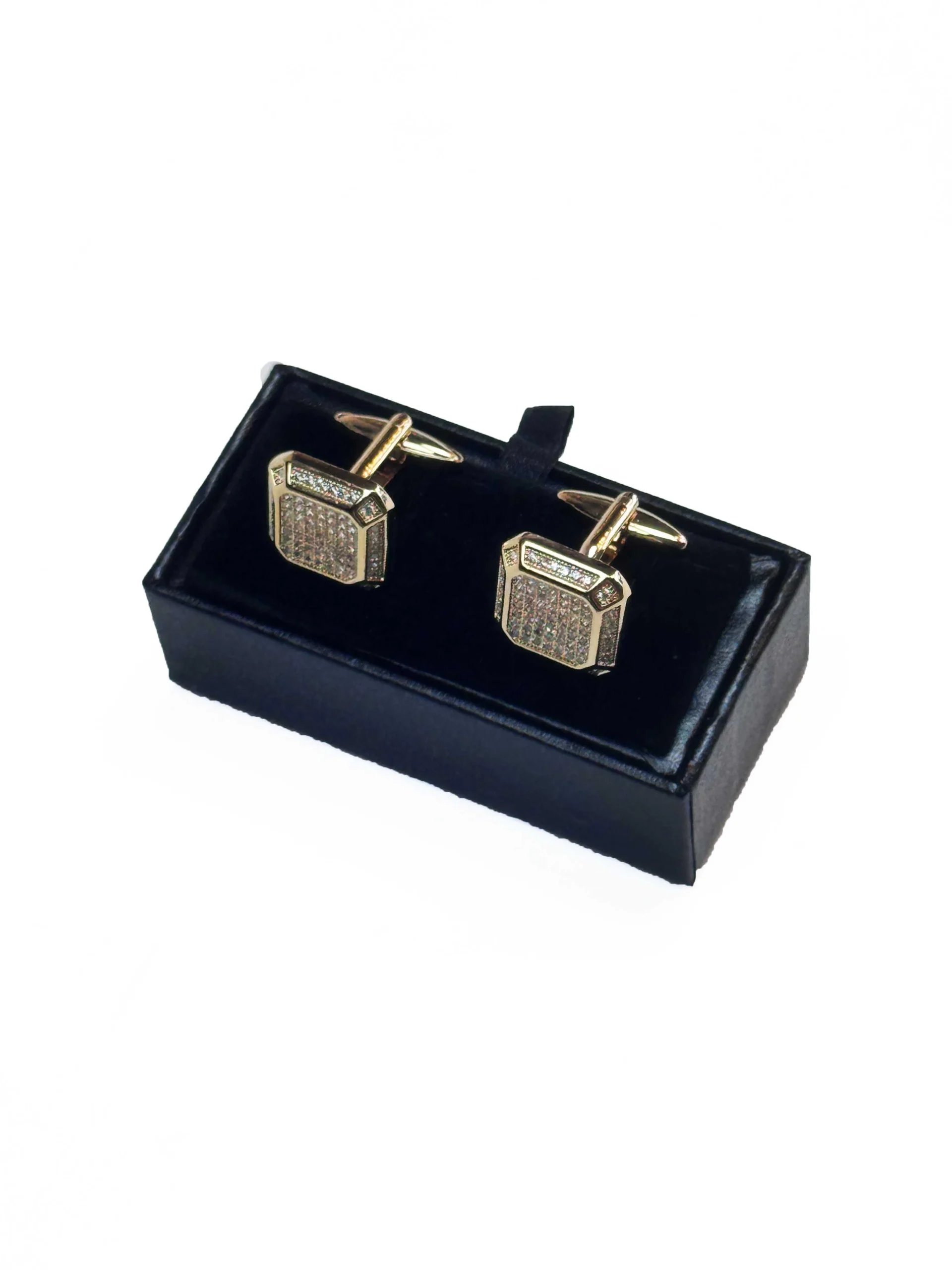 Daugiakampės formos auksinės spalvos vyriškos sąsagos su kristalų inkrustacija
