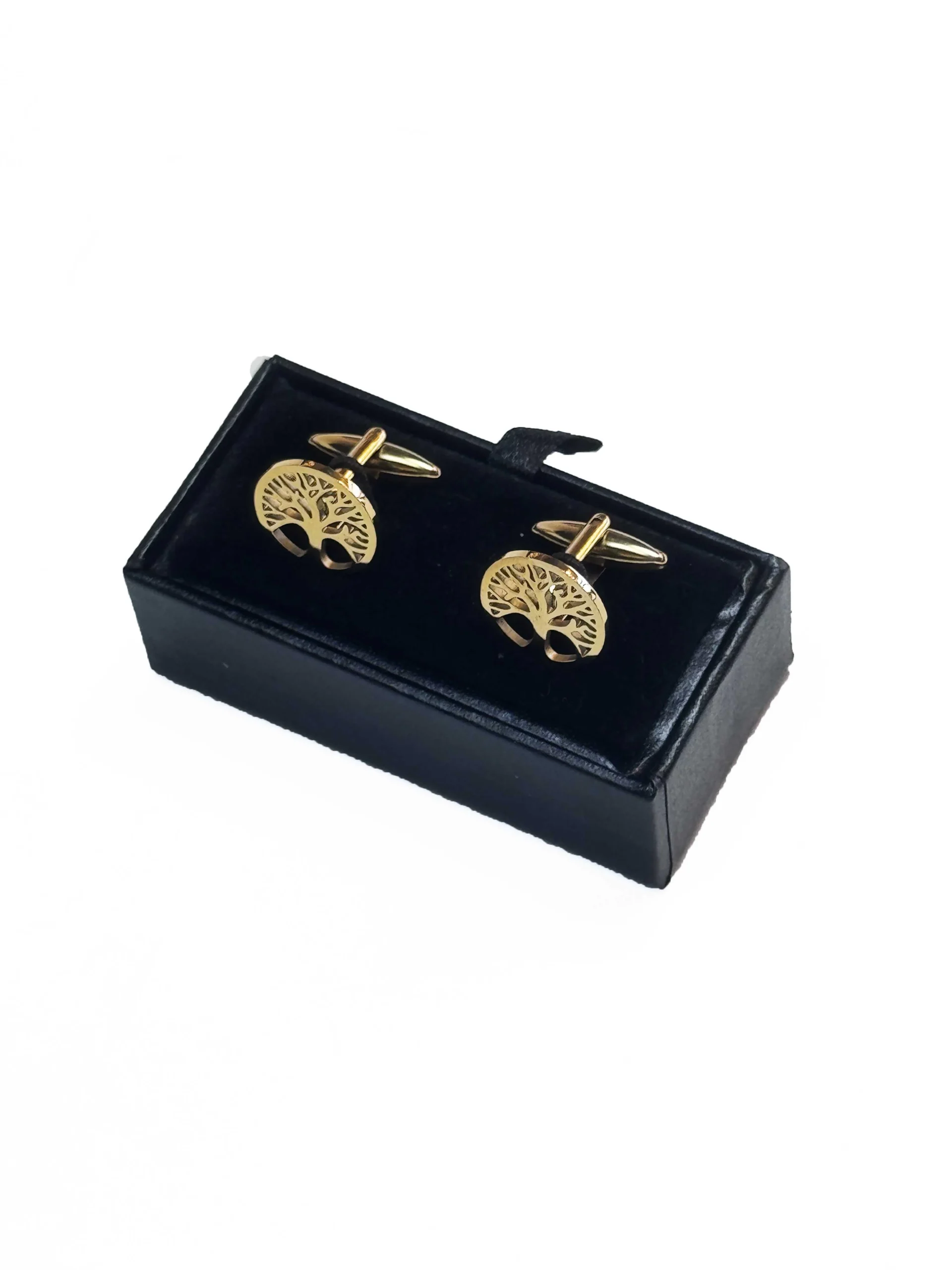 Vyriškos sąsagos aukso spalvos su medžio motyvu