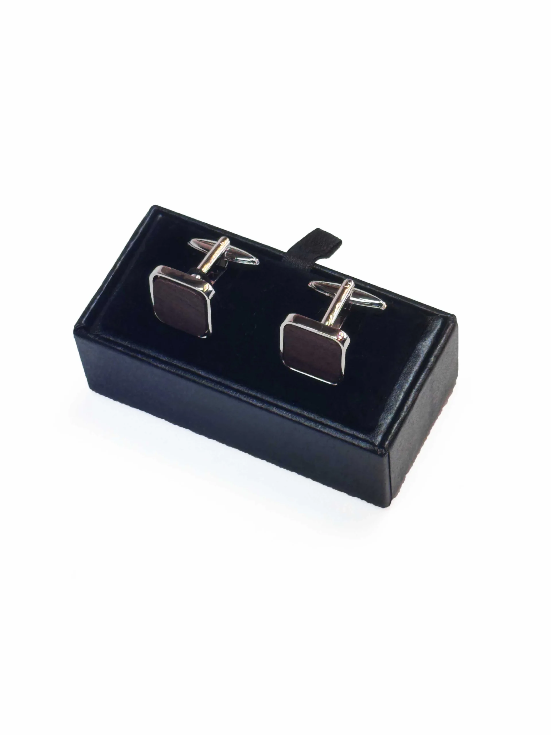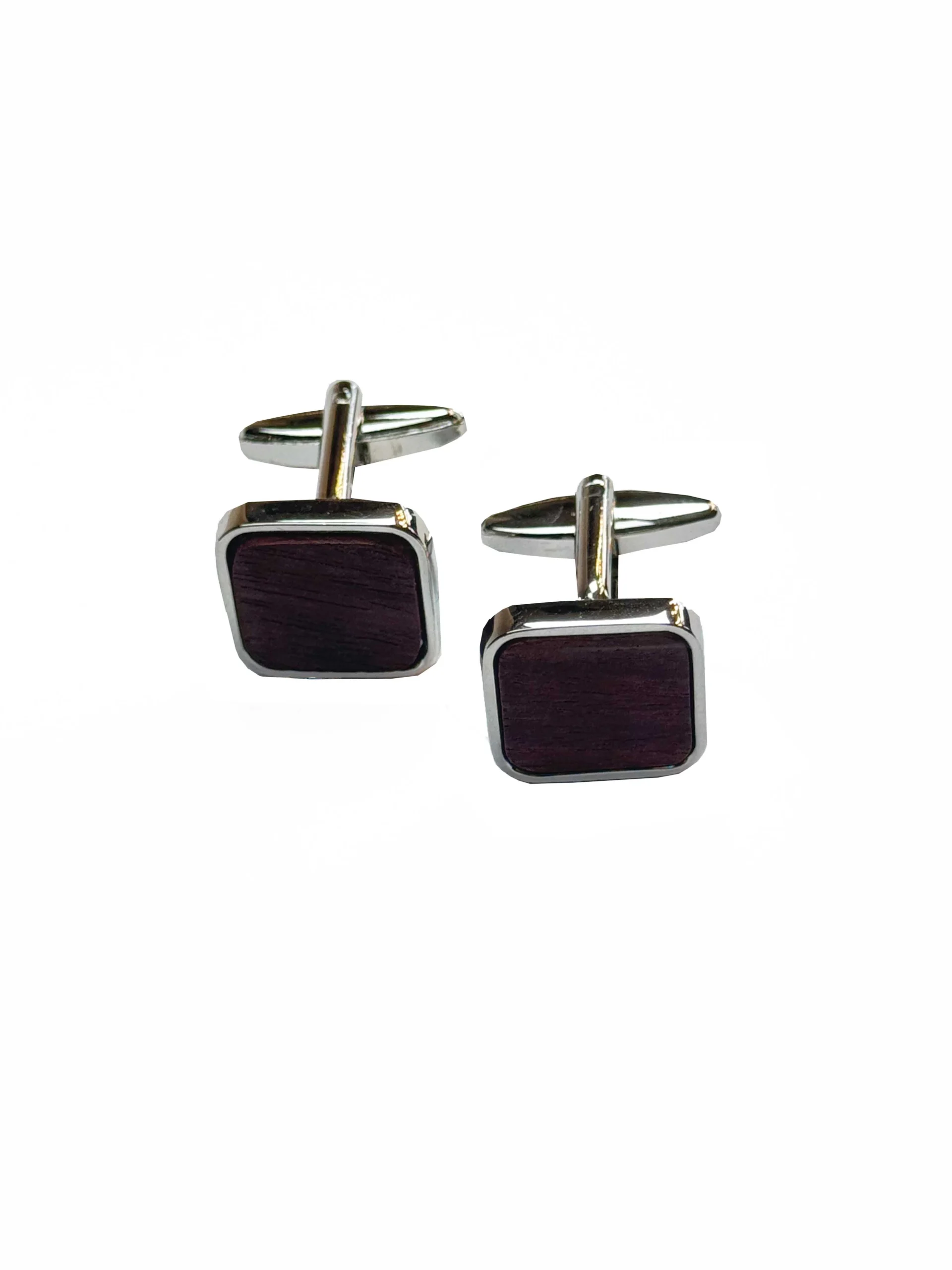 Kvadratinės formos sąsagos, puoštos subtilia medžio detale, įkomponuota į sidabro spalvos rėmelį. Šiltas medžio atspalvis dera su šaltu metalo žvilgesiu, sukuriant harmoningą ir modernų derinį. Šis aksesuaras subtiliai pabrėžia individualumą ir stiliaus pojūtį.