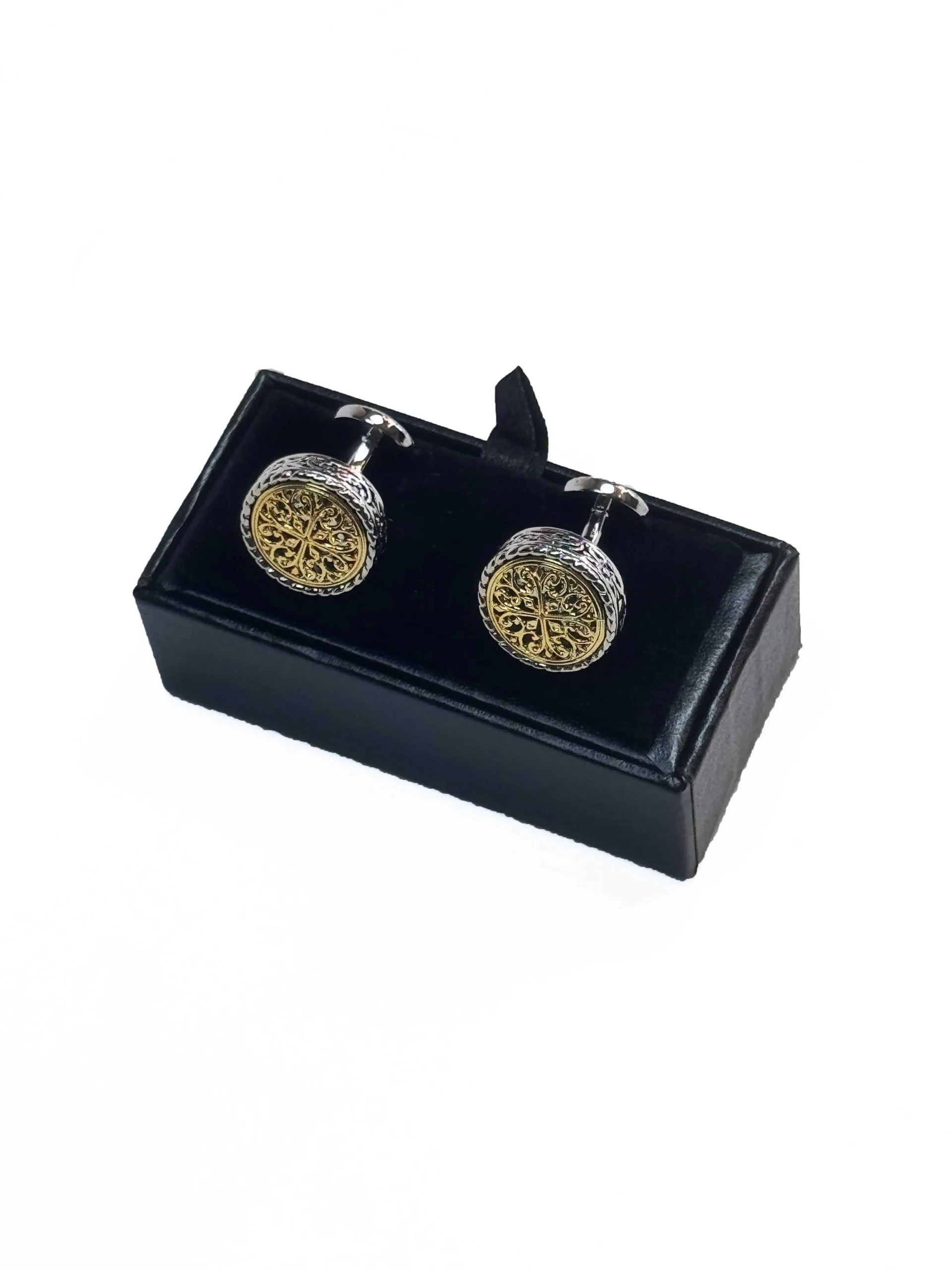 Vyriškos sąsagos su ornamentu sidabro ir aukso spalvos